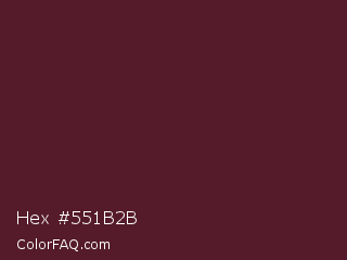 Hex #551b2b Color is a very dark rose color and the nearest color is Wine Berry #591d35. Hex code #551b2b and RGB value is rgb(85,27,43). In RGB color space, this color is composed of 33% red, 11% green, 17% blue, In CMYK color space, this color is composed of 0% cyan, 68% magenta, 49% yellow , 67% black , In HSL color space, this color has a hue angle of 343° , 52% saturation and 22% lightness.