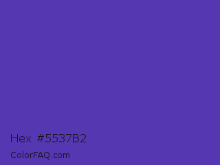 Hex #5537b2 Color is a normal indigo color and the nearest color is Ocean Blue #4f42b5. Hex code #5537b2 and RGB value is rgb(85,55,178). In RGB color space, this color is composed of 33% red, 22% green, 70% blue, In CMYK color space, this color is composed of 52% cyan, 69% magenta, 0% yellow , 30% black , In HSL color space, this color has a hue angle of 255° , 53% saturation and 46% lightness.