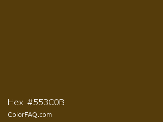 Hex #553c0b Color is a very dark orange color and the nearest color is Pineapple #563c0d. Hex code #553c0b and RGB value is rgb(85,60,11). In RGB color space, this color is composed of 33% red, 24% green, 4% blue, In CMYK color space, this color is composed of 0% cyan, 29% magenta, 87% yellow , 67% black , In HSL color space, this color has a hue angle of 40° , 77% saturation and 19% lightness.