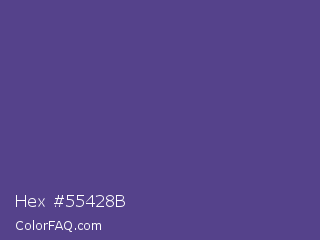 Hex #55428b Color is a normal indigo color and the nearest color is Victoria #534491. Hex code #55428b and RGB value is rgb(85,66,139). In RGB color space, this color is composed of 33% red, 26% green, 55% blue, In CMYK color space, this color is composed of 39% cyan, 53% magenta, 0% yellow , 45% black , In HSL color space, this color has a hue angle of 256° , 36% saturation and 40% lightness.