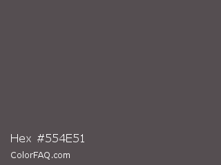 Hex #554e51 Color is a normal rose color and the nearest color is Dark Liver #534b4f. Hex code #554e51 and RGB value is rgb(85,78,81). In RGB color space, this color is composed of 33% red, 31% green, 32% blue, In CMYK color space, this color is composed of 0% cyan, 8% magenta, 5% yellow , 67% black , In HSL color space, this color has a hue angle of 334° , 4% saturation and 32% lightness.