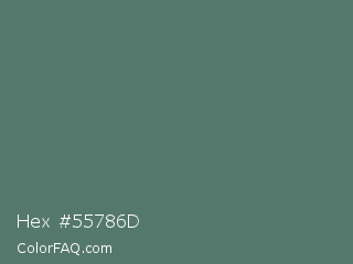 Hex #55786d Color is a normal green color and the nearest color is Cutty Sark #507672. Hex code #55786d and RGB value is rgb(85,120,109). In RGB color space, this color is composed of 33% red, 47% green, 43% blue, In CMYK color space, this color is composed of 29% cyan, 0% magenta, 9% yellow , 53% black , In HSL color space, this color has a hue angle of 161° , 17% saturation and 40% lightness.