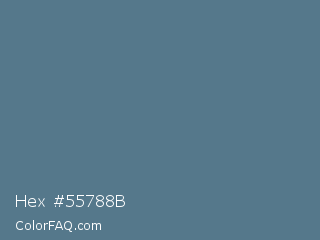 Hex #55788b Color is a normal blue color and the nearest color is Smalt Blue #51808f. Hex code #55788b and RGB value is rgb(85,120,139). In RGB color space, this color is composed of 33% red, 47% green, 55% blue, In CMYK color space, this color is composed of 39% cyan, 14% magenta, 0% yellow , 45% black , In HSL color space, this color has a hue angle of 201° , 24% saturation and 44% lightness.