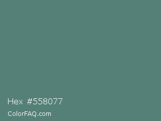 Hex #558077 Color is a normal cyan color and the nearest color is Wintergreen Dream #56887d. Hex code #558077 and RGB value is rgb(85,128,119). In RGB color space, this color is composed of 33% red, 50% green, 47% blue, In CMYK color space, this color is composed of 34% cyan, 0% magenta, 7% yellow , 50% black , In HSL color space, this color has a hue angle of 167° , 20% saturation and 42% lightness.