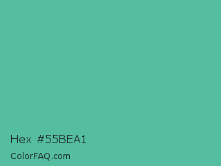 Hex #55bea1 Color is a normal green color and the nearest color is Tradewind #5fb3ac. Hex code #55bea1 and RGB value is rgb(85,190,161). In RGB color space, this color is composed of 33% red, 75% green, 63% blue, In CMYK color space, this color is composed of 55% cyan, 0% magenta, 15% yellow , 25% black , In HSL color space, this color has a hue angle of 163° , 45% saturation and 54% lightness.
