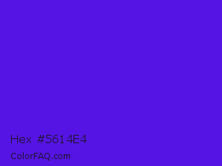 Hex #5614e4 Color is a normal indigo color and the nearest color is Han Purple #5218fa. Hex code #5614e4 and RGB value is rgb(86,20,228). In RGB color space, this color is composed of 34% red, 8% green, 89% blue, In CMYK color space, this color is composed of 62% cyan, 91% magenta, 0% yellow , 11% black , In HSL color space, this color has a hue angle of 259° , 84% saturation and 49% lightness.