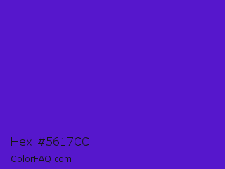 Hex #5617cc Color is a normal violet color and the nearest color is Purple Heart Crayola #652dc1. Hex code #5617cc and RGB value is rgb(86,23,204). In RGB color space, this color is composed of 34% red, 9% green, 80% blue, In CMYK color space, this color is composed of 58% cyan, 89% magenta, 0% yellow , 20% black , In HSL color space, this color has a hue angle of 261° , 80% saturation and 45% lightness.