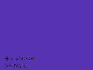 Hex #5634b1 Color is a normal indigo color and the nearest color is Ocean Blue #4f42b5. Hex code #5634b1 and RGB value is rgb(86,52,177). In RGB color space, this color is composed of 34% red, 20% green, 69% blue, In CMYK color space, this color is composed of 51% cyan, 71% magenta, 0% yellow , 31% black , In HSL color space, this color has a hue angle of 256° , 55% saturation and 45% lightness.