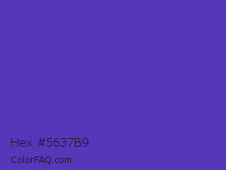 Hex #5637b9 Color is a normal indigo color and the nearest color is Ocean Blue #4f42b5. Hex code #5637b9 and RGB value is rgb(86,55,185). In RGB color space, this color is composed of 34% red, 22% green, 73% blue, In CMYK color space, this color is composed of 54% cyan, 70% magenta, 0% yellow , 27% black , In HSL color space, this color has a hue angle of 254° , 54% saturation and 47% lightness.