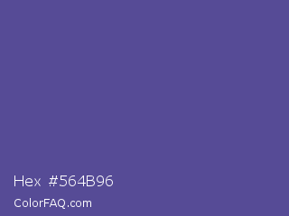 Hex #564b96 Color is a normal indigo color and the nearest color is Victoria #534491. Hex code #564b96 and RGB value is rgb(86,75,150). In RGB color space, this color is composed of 34% red, 29% green, 59% blue, In CMYK color space, this color is composed of 43% cyan, 50% magenta, 0% yellow , 41% black , In HSL color space, this color has a hue angle of 249° , 33% saturation and 44% lightness.
