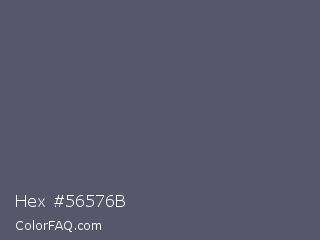 Hex #56576b Color is a normal blue color and the nearest color is Scarpa Flow #585562. Hex code #56576b and RGB value is rgb(86,87,107). In RGB color space, this color is composed of 34% red, 34% green, 42% blue, In CMYK color space, this color is composed of 20% cyan, 19% magenta, 0% yellow , 58% black , In HSL color space, this color has a hue angle of 237° , 11% saturation and 38% lightness.