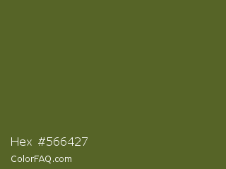 Hex #566427 Color is a dark lime color and the nearest color is Dark Olive Green #556b2f. Hex code #566427 and RGB value is rgb(86,100,39). In RGB color space, this color is composed of 34% red, 39% green, 15% blue, In CMYK color space, this color is composed of 14% cyan, 0% magenta, 61% yellow , 61% black , In HSL color space, this color has a hue angle of 74° , 44% saturation and 27% lightness.