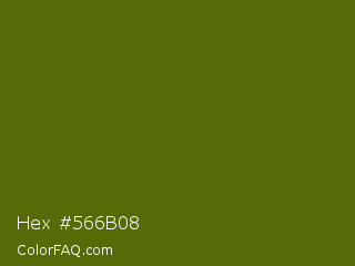 Hex #566b08 Color is a dark lime color and the nearest color is Saratoga #555b10. Hex code #566b08 and RGB value is rgb(86,107,8). In RGB color space, this color is composed of 34% red, 42% green, 3% blue, In CMYK color space, this color is composed of 20% cyan, 0% magenta, 93% yellow , 58% black , In HSL color space, this color has a hue angle of 73° , 86% saturation and 23% lightness.