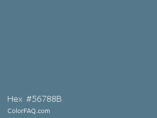 Hex #56788b Color is a normal blue color and the nearest color is Smalt Blue #51808f. Hex code #56788b and RGB value is rgb(86,120,139). In RGB color space, this color is composed of 34% red, 47% green, 55% blue, In CMYK color space, this color is composed of 38% cyan, 14% magenta, 0% yellow , 45% black , In HSL color space, this color has a hue angle of 202° , 24% saturation and 44% lightness.