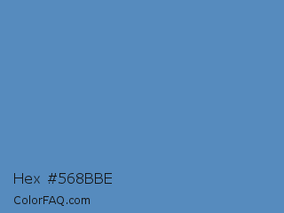 Hex #568bbe Color is a normal blue color and the nearest color is Silver Lake Blue #5d89ba. Hex code #568bbe and RGB value is rgb(86,139,190). In RGB color space, this color is composed of 34% red, 55% green, 75% blue, In CMYK color space, this color is composed of 55% cyan, 27% magenta, 0% yellow , 25% black , In HSL color space, this color has a hue angle of 209° , 44% saturation and 54% lightness.