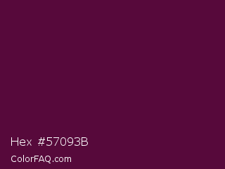 Hex #57093b Color is a very dark magenta color and the nearest color is Mulberry Wood #5c0536. Hex code #57093b and RGB value is rgb(87,9,59). In RGB color space, this color is composed of 34% red, 4% green, 23% blue, In CMYK color space, this color is composed of 0% cyan, 90% magenta, 32% yellow , 66% black , In HSL color space, this color has a hue angle of 322° , 81% saturation and 19% lightness.