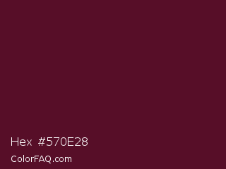 Hex #570e28 Color is a very dark rose color and the nearest color is Bordeaux #5c0120. Hex code #570e28 and RGB value is rgb(87,14,40). In RGB color space, this color is composed of 34% red, 5% green, 16% blue, In CMYK color space, this color is composed of 0% cyan, 84% magenta, 54% yellow , 66% black , In HSL color space, this color has a hue angle of 339° , 72% saturation and 20% lightness.