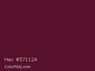 Hex #57112a Color is a very dark rose color and the nearest color is Wine Berry #591d35. Hex code #57112a and RGB value is rgb(87,17,42). In RGB color space, this color is composed of 34% red, 7% green, 16% blue, In CMYK color space, this color is composed of 0% cyan, 80% magenta, 52% yellow , 66% black , In HSL color space, this color has a hue angle of 339° , 67% saturation and 20% lightness.