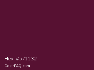 Hex #571132 Color is a very dark rose color and the nearest color is Wine Berry #591d35. Hex code #571132 and RGB value is rgb(87,17,50). In RGB color space, this color is composed of 34% red, 7% green, 20% blue, In CMYK color space, this color is composed of 0% cyan, 80% magenta, 43% yellow , 66% black , In HSL color space, this color has a hue angle of 332° , 67% saturation and 20% lightness.
