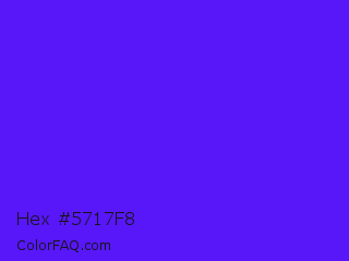 Hex #5717f8 Color is a normal indigo color and the nearest color is Han Purple #5218fa. Hex code #5717f8 and RGB value is rgb(87,23,248). In RGB color space, this color is composed of 34% red, 9% green, 97% blue, In CMYK color space, this color is composed of 65% cyan, 91% magenta, 0% yellow , 3% black , In HSL color space, this color has a hue angle of 257° , 94% saturation and 53% lightness.