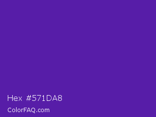 Hex #571da8 Color is a normal violet color and the nearest color is Daisy Bush #4f2398. Hex code #571da8 and RGB value is rgb(87,29,168). In RGB color space, this color is composed of 34% red, 11% green, 66% blue, In CMYK color space, this color is composed of 48% cyan, 83% magenta, 0% yellow , 34% black , In HSL color space, this color has a hue angle of 265° , 71% saturation and 39% lightness.