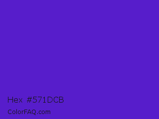 Hex #571dcb Color is a normal indigo color and the nearest color is Purple Heart Crayola #652dc1. Hex code #571dcb and RGB value is rgb(87,29,203). In RGB color space, this color is composed of 34% red, 11% green, 80% blue, In CMYK color space, this color is composed of 57% cyan, 86% magenta, 0% yellow , 20% black , In HSL color space, this color has a hue angle of 260° , 75% saturation and 45% lightness.