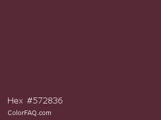 Hex #572836 Color is a dark rose color and the nearest color is Wine Berry #591d35. Hex code #572836 and RGB value is rgb(87,40,54). In RGB color space, this color is composed of 34% red, 16% green, 21% blue, In CMYK color space, this color is composed of 0% cyan, 54% magenta, 38% yellow , 66% black , In HSL color space, this color has a hue angle of 342° , 37% saturation and 25% lightness.
