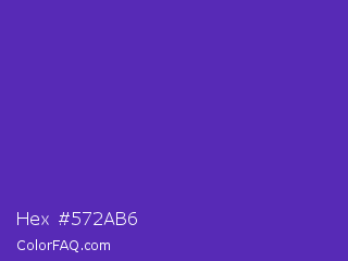 Hex #572ab6 Color is a normal indigo color and the nearest color is Purple Heart Crayola #652dc1. Hex code #572ab6 and RGB value is rgb(87,42,182). In RGB color space, this color is composed of 34% red, 16% green, 71% blue, In CMYK color space, this color is composed of 52% cyan, 77% magenta, 0% yellow , 29% black , In HSL color space, this color has a hue angle of 259° , 63% saturation and 44% lightness.