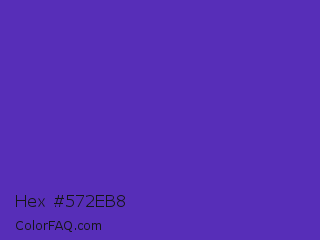 Hex #572eb8 Color is a normal indigo color and the nearest color is Purple Heart Crayola #652dc1. Hex code #572eb8 and RGB value is rgb(87,46,184). In RGB color space, this color is composed of 34% red, 18% green, 72% blue, In CMYK color space, this color is composed of 53% cyan, 75% magenta, 0% yellow , 28% black , In HSL color space, this color has a hue angle of 258° , 60% saturation and 45% lightness.