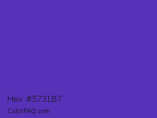 Hex #5731b7 Color is a normal indigo color and the nearest color is Purple Heart Crayola #652dc1. Hex code #5731b7 and RGB value is rgb(87,49,183). In RGB color space, this color is composed of 34% red, 19% green, 72% blue, In CMYK color space, this color is composed of 52% cyan, 73% magenta, 0% yellow , 28% black , In HSL color space, this color has a hue angle of 257° , 58% saturation and 45% lightness.