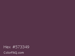 Hex #573349 Color is a dark magenta color and the nearest color is Voodoo #533455. Hex code #573349 and RGB value is rgb(87,51,73). In RGB color space, this color is composed of 34% red, 20% green, 29% blue, In CMYK color space, this color is composed of 0% cyan, 41% magenta, 16% yellow , 66% black , In HSL color space, this color has a hue angle of 323° , 26% saturation and 27% lightness.