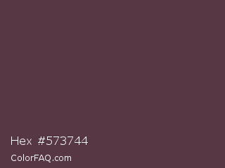Hex #573744 Color is a dark rose color and the nearest color is Matterhorn #4e3b41. Hex code #573744 and RGB value is rgb(87,55,68). In RGB color space, this color is composed of 34% red, 22% green, 27% blue, In CMYK color space, this color is composed of 0% cyan, 37% magenta, 22% yellow , 66% black , In HSL color space, this color has a hue angle of 336° , 23% saturation and 28% lightness.