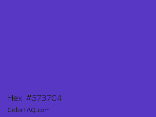 Hex #5737c4 Color is a normal indigo color and the nearest color is Purple Heart Crayola #652dc1. Hex code #5737c4 and RGB value is rgb(87,55,196). In RGB color space, this color is composed of 34% red, 22% green, 77% blue, In CMYK color space, this color is composed of 56% cyan, 72% magenta, 0% yellow , 23% black , In HSL color space, this color has a hue angle of 254° , 56% saturation and 49% lightness.