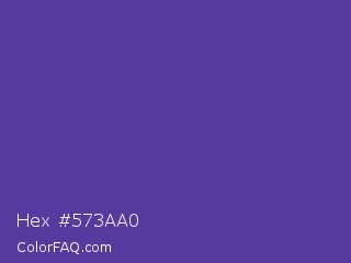 Hex #573aa0 Color is a normal indigo color and the nearest color is Gigas #523c94. Hex code #573aa0 and RGB value is rgb(87,58,160). In RGB color space, this color is composed of 34% red, 23% green, 63% blue, In CMYK color space, this color is composed of 46% cyan, 64% magenta, 0% yellow , 37% black , In HSL color space, this color has a hue angle of 257° , 47% saturation and 43% lightness.