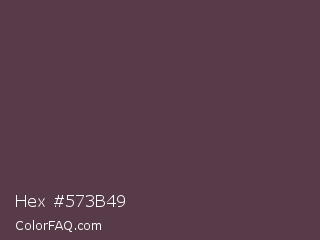 Hex #573b49 Color is a dark rose color and the nearest color is Purple Taupe #50404d. Hex code #573b49 and RGB value is rgb(87,59,73). In RGB color space, this color is composed of 34% red, 23% green, 29% blue, In CMYK color space, this color is composed of 0% cyan, 32% magenta, 16% yellow , 66% black , In HSL color space, this color has a hue angle of 330° , 19% saturation and 29% lightness.