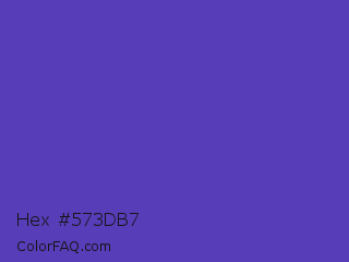 Hex #573db7 Color is a normal indigo color and the nearest color is Ocean Blue #4f42b5. Hex code #573db7 and RGB value is rgb(87,61,183). In RGB color space, this color is composed of 34% red, 24% green, 72% blue, In CMYK color space, this color is composed of 52% cyan, 67% magenta, 0% yellow , 28% black , In HSL color space, this color has a hue angle of 253° , 50% saturation and 48% lightness.