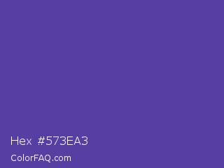 Hex #573ea3 Color is a normal indigo color and the nearest color is Gigas #523c94. Hex code #573ea3 and RGB value is rgb(87,62,163). In RGB color space, this color is composed of 34% red, 24% green, 64% blue, In CMYK color space, this color is composed of 47% cyan, 62% magenta, 0% yellow , 36% black , In HSL color space, this color has a hue angle of 255° , 45% saturation and 44% lightness.