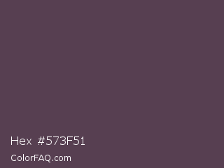 Hex #573f51 Color is a dark magenta color and the nearest color is Mortar #504351. Hex code #573f51 and RGB value is rgb(87,63,81). In RGB color space, this color is composed of 34% red, 25% green, 32% blue, In CMYK color space, this color is composed of 0% cyan, 28% magenta, 7% yellow , 66% black , In HSL color space, this color has a hue angle of 315° , 16% saturation and 29% lightness.