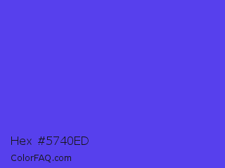 Hex #5740ed Color is a normal indigo color and the nearest color is Majorelle Blue #6050dc. Hex code #5740ed and RGB value is rgb(87,64,237). In RGB color space, this color is composed of 34% red, 25% green, 93% blue, In CMYK color space, this color is composed of 63% cyan, 73% magenta, 0% yellow , 7% black , In HSL color space, this color has a hue angle of 248° , 83% saturation and 59% lightness.