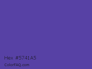 Hex #5741a5 Color is a normal indigo color and the nearest color is Plump Purple #5946b2. Hex code #5741a5 and RGB value is rgb(87,65,165). In RGB color space, this color is composed of 34% red, 25% green, 65% blue, In CMYK color space, this color is composed of 47% cyan, 61% magenta, 0% yellow , 35% black , In HSL color space, this color has a hue angle of 253° , 43% saturation and 45% lightness.