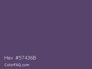 Hex #57436b Color is a normal violet color and the nearest color is Mulled Wine #4e4562. Hex code #57436b and RGB value is rgb(87,67,107). In RGB color space, this color is composed of 34% red, 26% green, 42% blue, In CMYK color space, this color is composed of 19% cyan, 37% magenta, 0% yellow , 58% black , In HSL color space, this color has a hue angle of 270° , 23% saturation and 34% lightness.