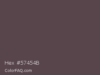 Hex #57454b Color is a normal rose color and the nearest color is Emperor #514649. Hex code #57454b and RGB value is rgb(87,69,75). In RGB color space, this color is composed of 34% red, 27% green, 29% blue, In CMYK color space, this color is composed of 0% cyan, 21% magenta, 14% yellow , 66% black , In HSL color space, this color has a hue angle of 340° , 12% saturation and 31% lightness.