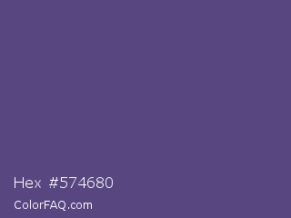 Hex #574680 Color is a normal indigo color and the nearest color is Cyber Grape #58427c. Hex code #574680 and RGB value is rgb(87,70,128). In RGB color space, this color is composed of 34% red, 27% green, 50% blue, In CMYK color space, this color is composed of 32% cyan, 45% magenta, 0% yellow , 50% black , In HSL color space, this color has a hue angle of 258° , 29% saturation and 39% lightness.
