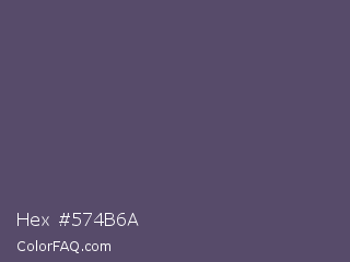Hex #574b6a Color is a normal violet color and the nearest color is Scarpa Flow #585562. Hex code #574b6a and RGB value is rgb(87,75,106). In RGB color space, this color is composed of 34% red, 29% green, 42% blue, In CMYK color space, this color is composed of 18% cyan, 29% magenta, 0% yellow , 58% black , In HSL color space, this color has a hue angle of 263° , 17% saturation and 35% lightness.