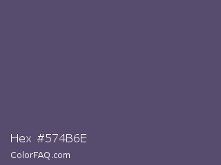 Hex #574b6e Color is a normal violet color and the nearest color is Independence #4c516d. Hex code #574b6e and RGB value is rgb(87,75,110). In RGB color space, this color is composed of 34% red, 29% green, 43% blue, In CMYK color space, this color is composed of 21% cyan, 32% magenta, 0% yellow , 57% black , In HSL color space, this color has a hue angle of 261° , 19% saturation and 36% lightness.