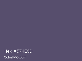 Hex #574e6d Color is a normal indigo color and the nearest color is Independence #4c516d. Hex code #574e6d and RGB value is rgb(87,78,109). In RGB color space, this color is composed of 34% red, 31% green, 43% blue, In CMYK color space, this color is composed of 20% cyan, 28% magenta, 0% yellow , 57% black , In HSL color space, this color has a hue angle of 257° , 17% saturation and 37% lightness.