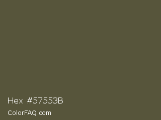 Hex #57553b Color is a dark yellow color and the nearest color is Hemlock #5e5d3b. Hex code #57553b and RGB value is rgb(87,85,59). In RGB color space, this color is composed of 34% red, 33% green, 23% blue, In CMYK color space, this color is composed of 0% cyan, 2% magenta, 32% yellow , 66% black , In HSL color space, this color has a hue angle of 56° , 19% saturation and 29% lightness.