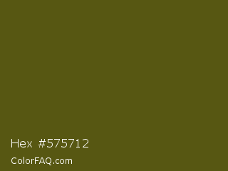 Hex #575712 Color is a very dark yellow color and the nearest color is Saratoga #555b10. Hex code #575712 and RGB value is rgb(87,87,18). In RGB color space, this color is composed of 34% red, 34% green, 7% blue, In CMYK color space, this color is composed of 0% cyan, 0% magenta, 79% yellow , 66% black , In HSL color space, this color has a hue angle of 60° , 66% saturation and 21% lightness.