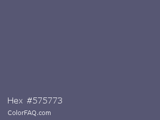 Hex #575773 Color is a normal blue color and the nearest color is Comet #5c5d75. Hex code #575773 and RGB value is rgb(87,87,115). In RGB color space, this color is composed of 34% red, 34% green, 45% blue, In CMYK color space, this color is composed of 24% cyan, 24% magenta, 0% yellow , 55% black , In HSL color space, this color has a hue angle of 240° , 14% saturation and 40% lightness.