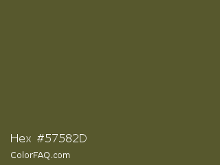 Hex #57582d Color is a dark yellow color and the nearest color is Costa Del Sol #615d30. Hex code #57582d and RGB value is rgb(87,88,45). In RGB color space, this color is composed of 34% red, 35% green, 18% blue, In CMYK color space, this color is composed of 1% cyan, 0% magenta, 49% yellow , 65% black , In HSL color space, this color has a hue angle of 61° , 32% saturation and 26% lightness.